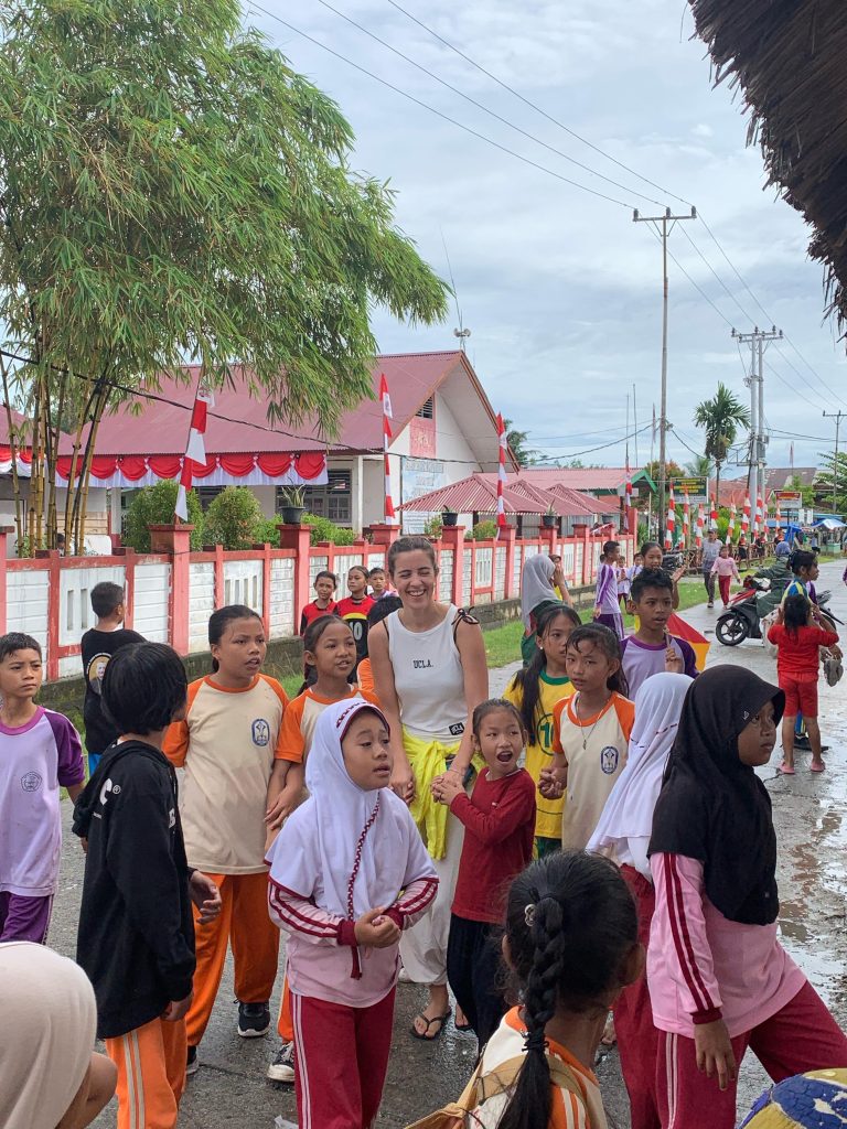 Dopo quattro aerei e una barca, approdiamo finalmente a Siberut, cuore delle isole Mentawai. Ad accoglierci ci sono padre Mourice e Jhon, con il loro furgone variopinto che sembra racchiudere già un po’ dell’anima dell’isola. La natura qui è potente, avvolgente. E lo è anche il calore dei bambini del dormitorio della scuola Santa Maria: sguardi curiosi che diventano sorrisi, saluti accompagnati dal gesto tipico di stringere la mano e portarla al viso. Le giornate scorrono lente, tra collane di perline, partite di sport e momenti di vita semplice. L’isola ha una sola strada, che ci porta fino alle zone più remote dove incontriamo le tribù guidate dagli sciamani. Ci mostrano la loro quotidianità, un ritmo di vita lontano dal nostro e incredibilmente autentico.
